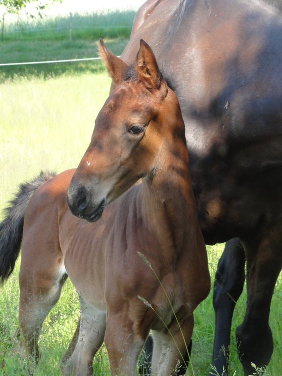 natürlich auch über die 1.60m sprang und 6 direkte Nachkommen, sowie Enkel in zweistelliger Höhe auf internationalem Niveau hat. Für uns deutsche Züchter eine Mutterlinie, die uns das Fürchten