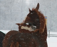 Das neue Jahr beginnt, und schon sind unsere Fohlen vom vorigen Jahr Jährlinge. Aus den schönen, langbeinigen Fohlen sind wahre Zottelmonster geworden. Jedes Körperteil scheint für sich alleine in irgendeine Richtung zu wachsen. Man braucht jetzt schon viel Phantasie um den zukünftigen Olympiasieger zu erkennen. Aber sobald sie im Frühjahr auf die Sommerweide umziehen, verwandeln sie sich in kürzester Zeit in hoffnungsvolle Jungpferde. Unser Schwerpunkt liegt ganz klar auf der Springpferdezucht, insofern werden sie bei uns hauptsächlich stark springlastige Abstammungen finden.