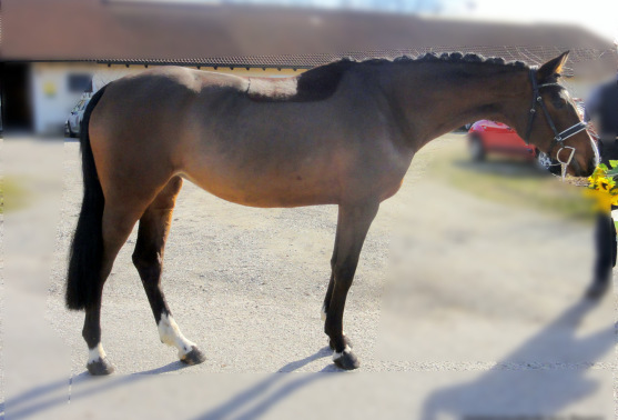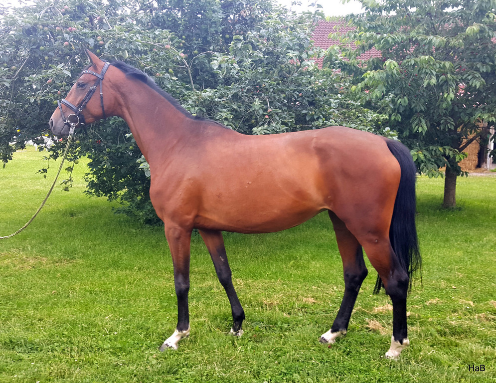 Auch Dearada HaB hat ein Zuchtjahr hinter sich (Stutfohlen v. Larino). Schon als Fohlen auffällig in Typ und Bewegung hat sie gehalten was sie damals versprach. Formschön mit topmodernem, blutgeprägten Erscheinungsbild. Mit dazu in allen drei Grundgangarten ausreichend Bewegungsmöglichkeiten ausgestattet wird ihre Zukunft, trotz talentiertem Freispringen, wohl im Dressurviereck liegen. Geritten, brilliert sich mit guten Rittigkeitswerten und hoher Arbeitsbereitschaft.